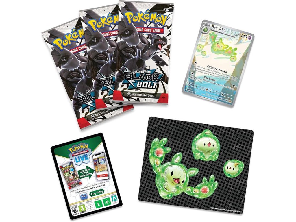 Pokémon Black Bolt je součástí speciální edice karetních her Pokémon TCG s názvem Scarlet & Violet - Black Bolt and White Flare, která vychází 18. července 2025. Tato edice je jednou ze dvou částí rozděleného setu, spolu s White Flare a hlavně se zaměřují na Pokémony z regionu Unova.