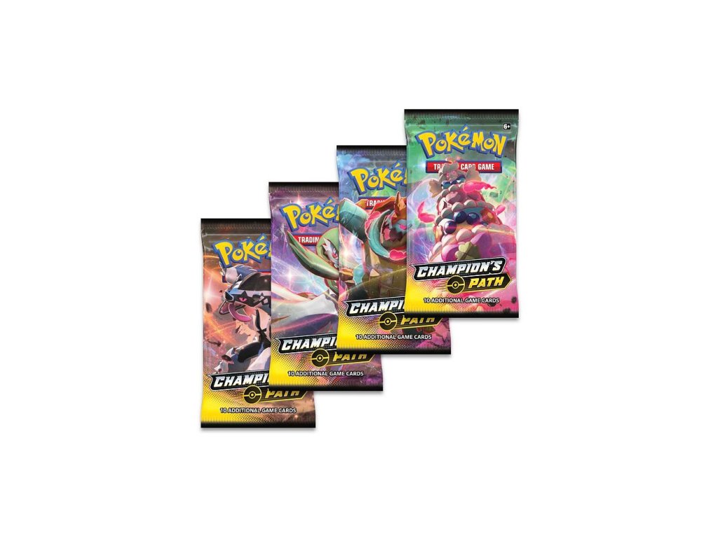 Pokémon TCG: Champion's Path Booster Pack je základní doplňkový balíček karetní hry Pokémon, který nabízí hráčům možnost rozšířit si herní balíček nebo sbírku o nové karty. V každém je 10 náhodných karet z vybrané edice, kdy jedna z nich je vzácná a pokud máte štěstí, můžete takto objevit i vzácné Pokémony V a VMAX!