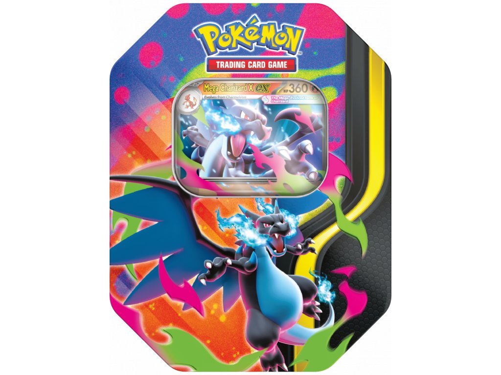 Pokémon TCG: Spring ex Tin Mega Charizard X ex je dárkové balení 4 balíčků karet a promo karty Pokémona Mega Charizard X ex ve stylové plechové krabičce pro správné sběratele.