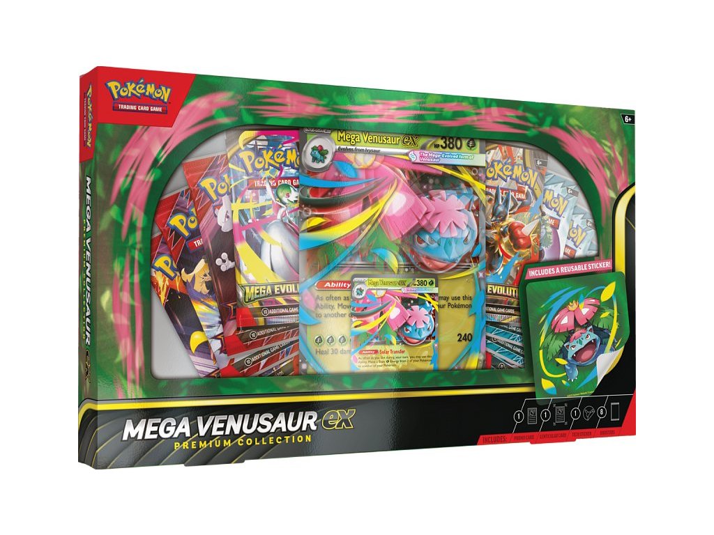Pokémon TCG: Mega Venusaur ex Premium Collection Box je speciální produkt obsahující 1 foliovou promo kartu Mega Venusaur ex, 1 Jumbo lentikulární promo kartu Venusaur ex a balíčky. Celkem se zde nachází 8 booster balíčků novějších edic a samozřejmě kód do online hry. Jumbo karta Venusaur je holografická karta, která vytváří při pohledu na ni prostorový dojem. Jedná se o relativně unikátní jumbo kartu, která je speciální oproti běžných jumbo kartám.